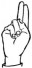 На ћирилици написано КАЋА БАРИЋ састоји се из 9 слова [?]. Исписано ћириличном једноручном азбуком за глувонеме: